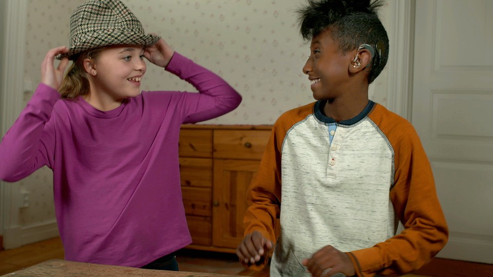 Del 5. När Sara och John städar i det gamla huset känner de sig iakttagna. Kan det vara en fågel som spejar på dem? I kistan i stora rummet hittar de kläder som de klär ut sig i. Plötsligt slår en dörr igen. Är det korsdrag eller ett spöke? Vi lär oss tecken för tre fågelarter och några klädesplagg.