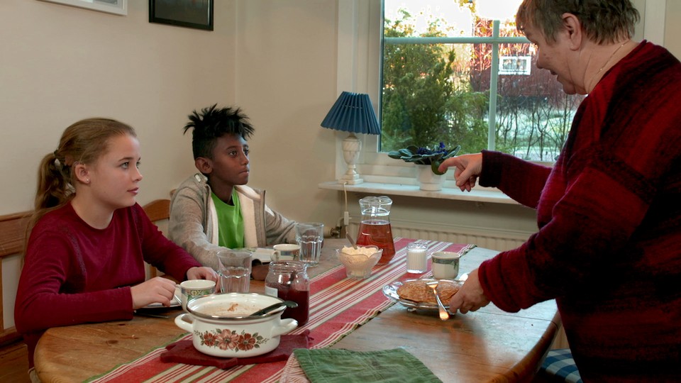 Del 2. Mormor bjuder Sara och John på pannkakor hemma i köket. Barnen är ivriga att smyga över till det gamla huset som stått tomt sedan länge. De upptäcker att någon varit där. Vem har lämnat spår i dammet?