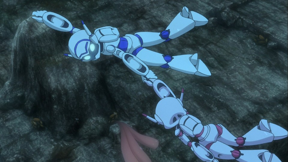 Japansk anime. Vince, Hannah och Pikaia har rest tillbaka i tiden för att samla in dna från den kambriska explosionen. Vännerna befinner sig i det kambriska urhavet där de försöker fånga in en Hallucigenia.