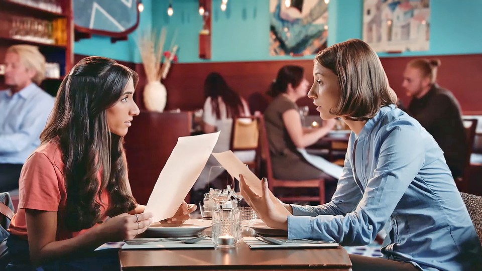 Amira är sen för hon lunchat med en vän som är vegan, eller var hon vegetarian?