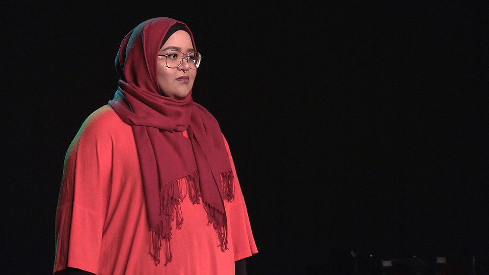 Att bära slöja, hijab, är att välja att bära en religiös symbol. Valet att bära hijab handlar i grund och botten om en relation till Gud. Men beslutet att bära hijab, eller att inte inte göra det - det är personligt. Scen ur America Vera-Zavalas pjäs. Med Benin Al-Najjar, Ruhani, Maryam Dinar, Sarah Ameziane och Shama Vafaipour.