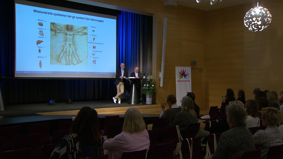 Mitokondriella sjukdomar orsakas av att mitokondrierna inte fungerar som de ska och kan ge symtom från alla kroppens organ. Niklas Darin och Christopher Lindberg berättar om sjukdomsgruppen, hur diagnosen ställs och hur teamet arbetar kring uppföljning och behandling. Christopher Lindberg är docent och överläkare vid Neuromuskulärt Centrum på Sahlgrenska universitetssjukhuset och Niklas Darin är professor och överläkare vid Drottning Silvias barn- och ungdomssjukhus. Inspelat den 28 februari 2018 på Folkets hus i Göteborg. Arrangör: Centrum för sällsynta diagnoser i väst, Ågrenska och Nationella funktionen sällsynta diagnoser.