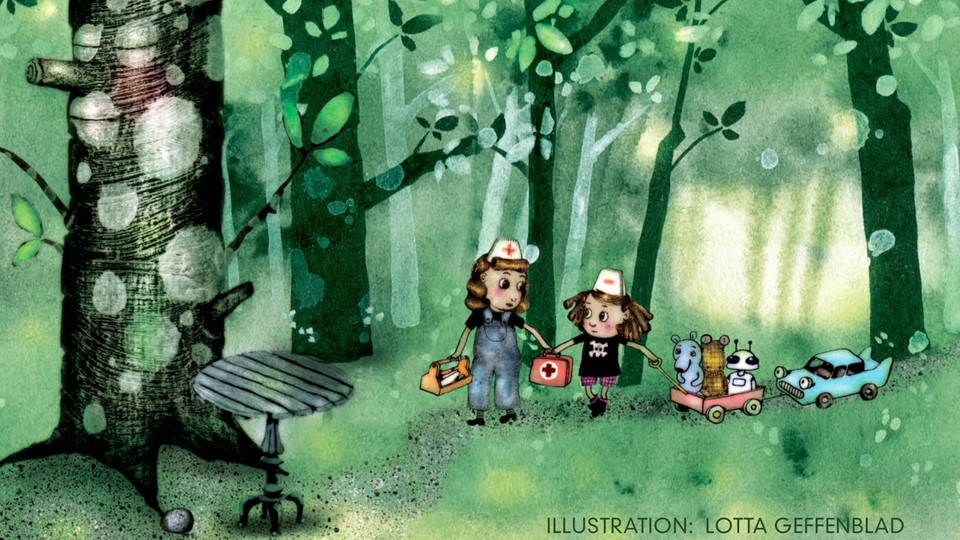 Ayad Hamid berättar Lotta Geffenblads saga "Syster Plus och doktor Minus". Sagan handlar om hur leksakerna som är sjuka får plåster och blir glada.