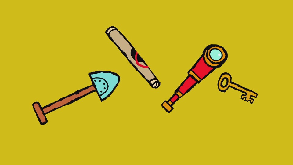 Pino hittar en skattkarta. Skatten finns på en ö som ligger långt bort. Nu väntar spännande äventyr! Man behöver en kikare. En spade. En nyckel. Kartan. Och ett garnnystan. Men, vilka vill följa med?