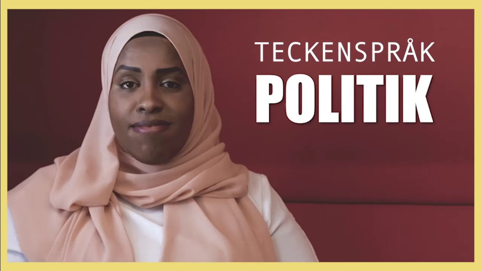 Rahma går igenom tecken på svenskt teckenspråk. Dagens tema är politik.