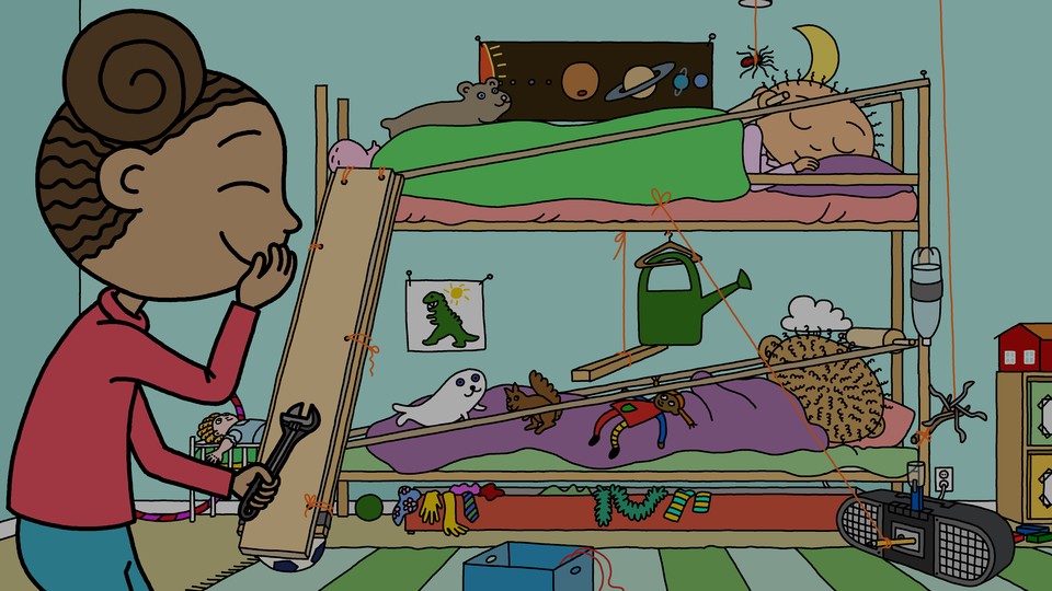 - Fiktiva berättelser, Flickor, Morgon, Teknik, Trött, Uppfinnare, Uppfinningar