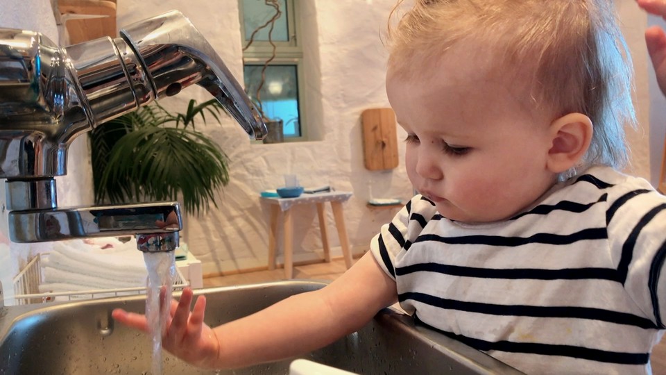 Det är viktigt att tvätta händerna och barnen är duktiga på att göra det själva.