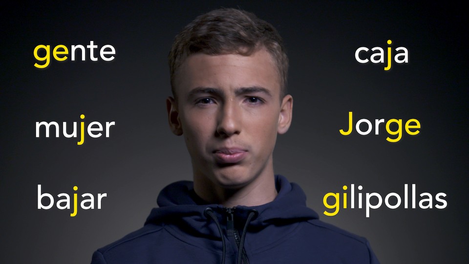 Att kalla någon för gilipollas är inte snällt - men ett bra sätt att öva på det spanska sch-ljudet. Uttalet ligger långt bak i halsen. Du får även öva på att säga snälla ord som "gente", "mujer" och "Jorge". Del 9 av 17.