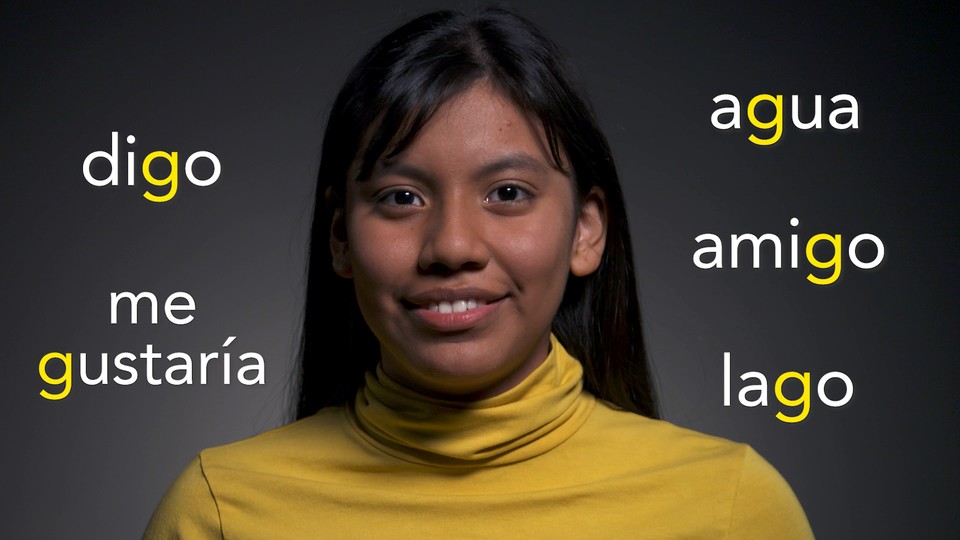 På spanska uttalas bokstaven g ofta mjukare än på svenska. Lyssna på Andrea och Piccolo, härma dem och förbättra ditt uttal av vanliga ord som agua, amigo och digo. Del 8 av 17.