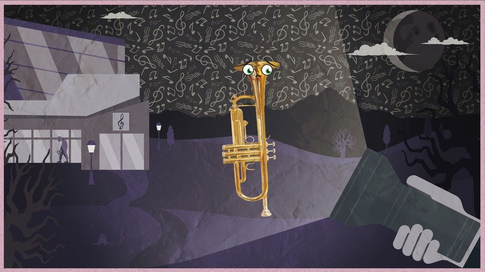Trumpet har kidnappats av den elaka vaktmästaren. Nere i förrådet i källaren lär han känna Tuba och Klarinett. Trumpet gör allt han kan för att komma upp till scenen igen. Han tutar högt för att signalera om hjälp, men det skulle han aldrig ha gjort... Vi lär oss om blåsinstrumentet Trumpet. Hur den ser ut, låter och känns. Vi fördjupar oss i Klarinett och får höra den spela olika stycken med varierande rytm, tempo och tonläge.