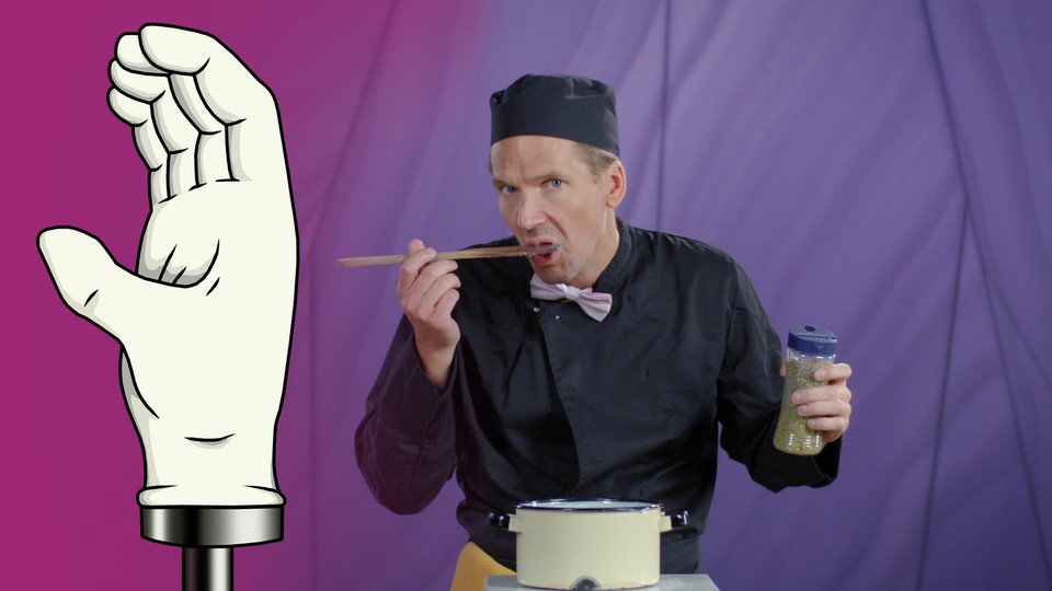 Uppe på vinden kryddar vaktmästaren starkt, så starkt att det bränns!