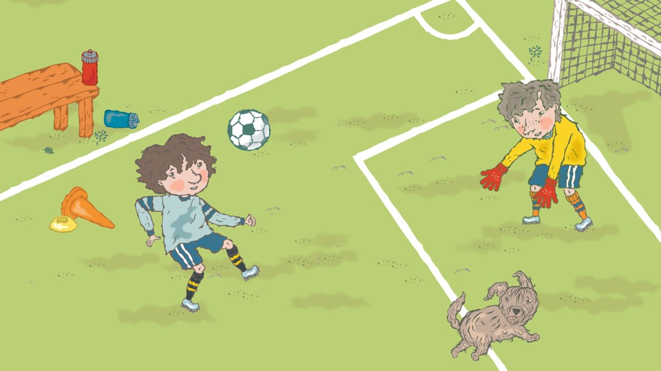 Del 14. Morgonen efter begravningen är det lördag och Elliot cyklar till fotbollsplanen för att öva straffar med sin kompis Emil. Hunden Frallan följer med. Den här gången känns kroppen lätt och han cyklar som en raket. Elliot har bestämt sig. Idag ska han lära Emil morfars straff-fint.