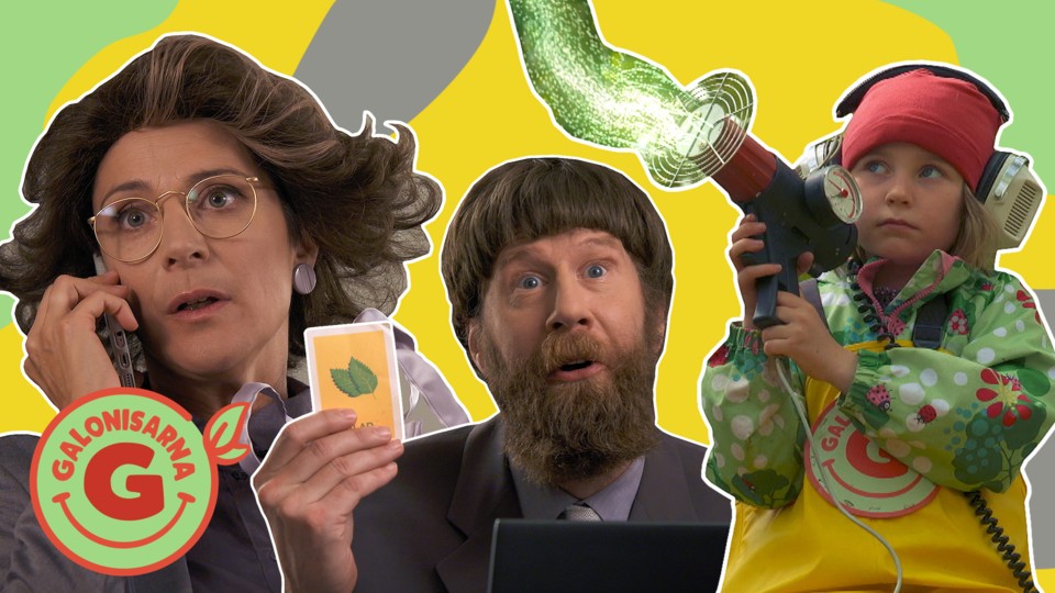 Kontorisarna tror inte att blad finns i verkligheten. Det måste Galonisarna ändra på! Växternas blad är livsviktiga för allt liv på jorden. De kan göra syre av solljus. Och syre behöver både djur och människor!