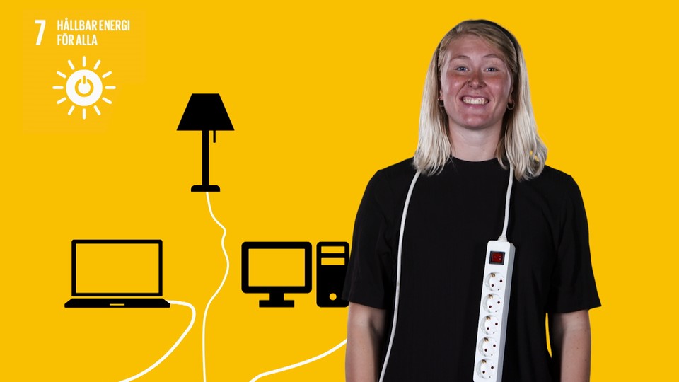 Vi måste minska användningen av fossil energi och på sikt ställa om till förnybar energi som sol, vind och vatten. Avsnittet avslutas med konkreta tips om vad man kan göra för att minska vår elkonsumtion och bidra till att mål nummer sju uppnås.