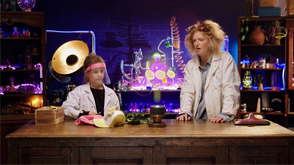 Visste du att man med hjälp av citroner kan tända en lampa? Nicoles uppfinning lyser upp laboratoriet medan testgruppen testar vad som händer när man slår med en hammare på blått potatismjöl.
