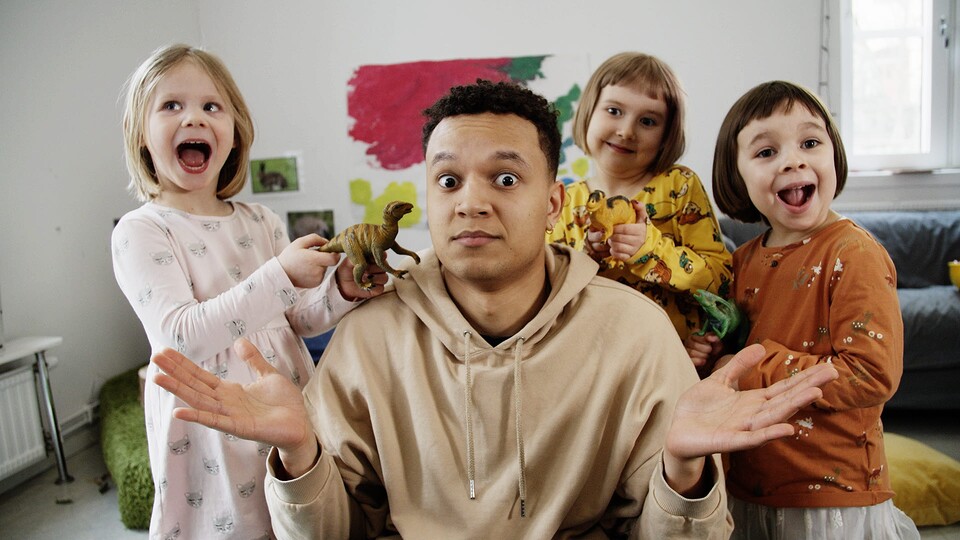 På en finsk förskola får Liam i uppgift att få ordning på barnen genom att ge order på finska, såklart. Frågan är vilket som egentligen är svårast - de finska imperativen eller att jobba på förskola?