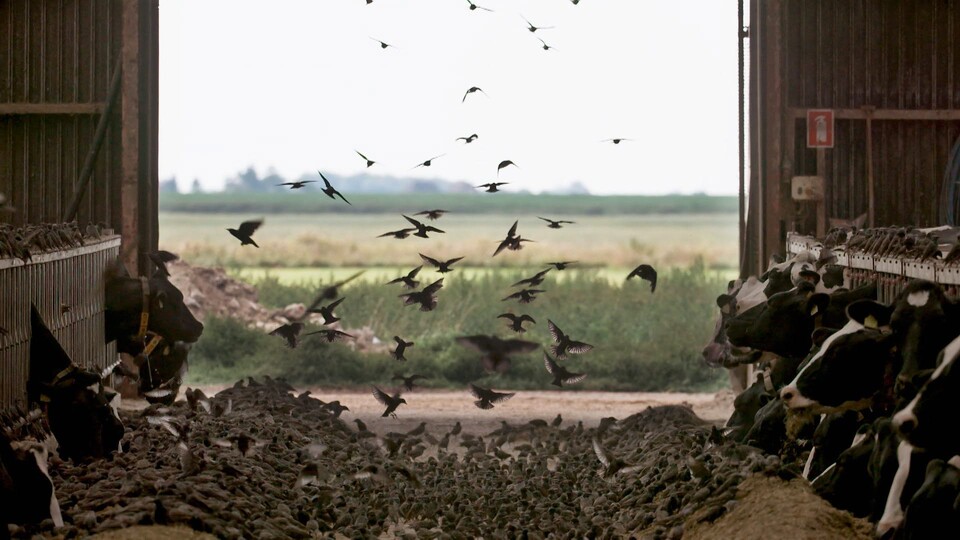 En liten stare flyger in i en ladugård för att hitta mat. I ladugården finns det gott om komat. Nog måste korna ha tillräckligt med mat för att dela med sig till en liten stare? Men plötsligt flyger tusentals starar inne i ladugården.
