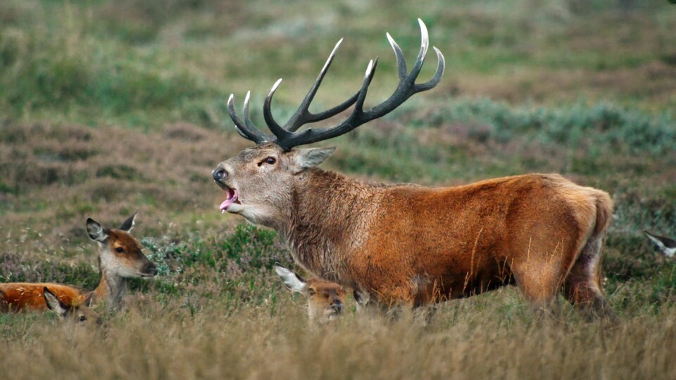 En stor kronhjort brölar allt han kan. Han gör detta för att kalla på honorna. Men en annan kronhjort utmanar honom och de två hjortarna går till strid med sina stora horn.