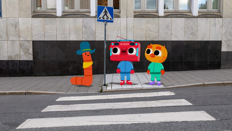 Med hjälp av musik och ramsor får barn i förskolan lära sig om hur man beter sig ansvarsfullt i trafiken. Figurerna hittar på ramsor och sånger om vad de håller på med. Stämningen är lekfullt utforskande och tanken är att uppmuntra barnen till att delta och sjunga med och på så vis lära sig trafikvett.