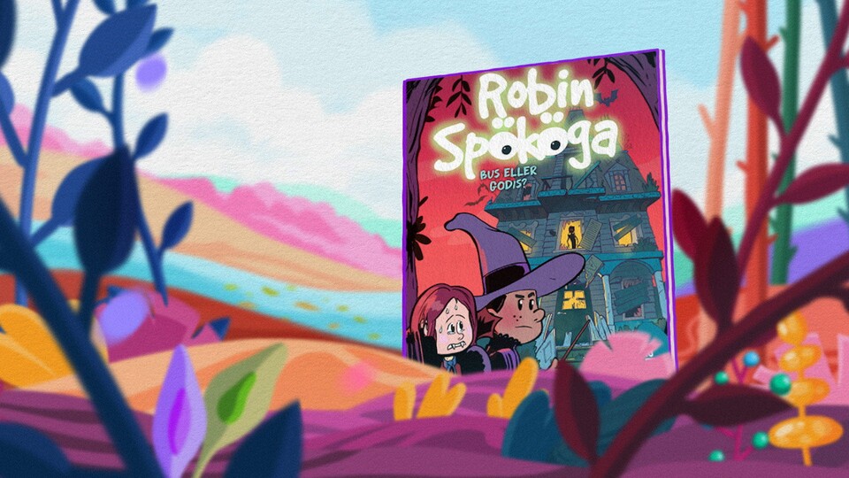 Läsnivå 2. Nivåindelningen baseras på tempo, bildväxlingar, textomfång och ordval. Ur bokserien "Robin Spököga". Robin och hans kompis Eli ska gå bus eller godis, men när Robin knackar på dörren till ett av husen händer det något mycket märkligt. Texten skrivs ut i bilden i stavelser samtidigt som vi hör berättarrösten läsa texten.