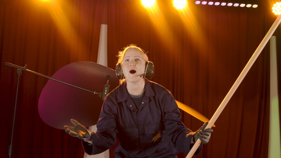 Hänger area ihop med volym? Josefine klurar på hur man räknar ut en cirkels area och bygger sedan en jättestor cymbal för att testa hur starkt den låter.