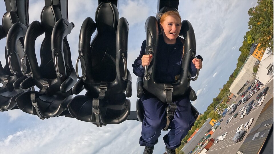 Hur långt hinner man åka berg- och dalbana på en timme? Josefine håller tungan rätt i mun för att hålla koll på både tid och längd.