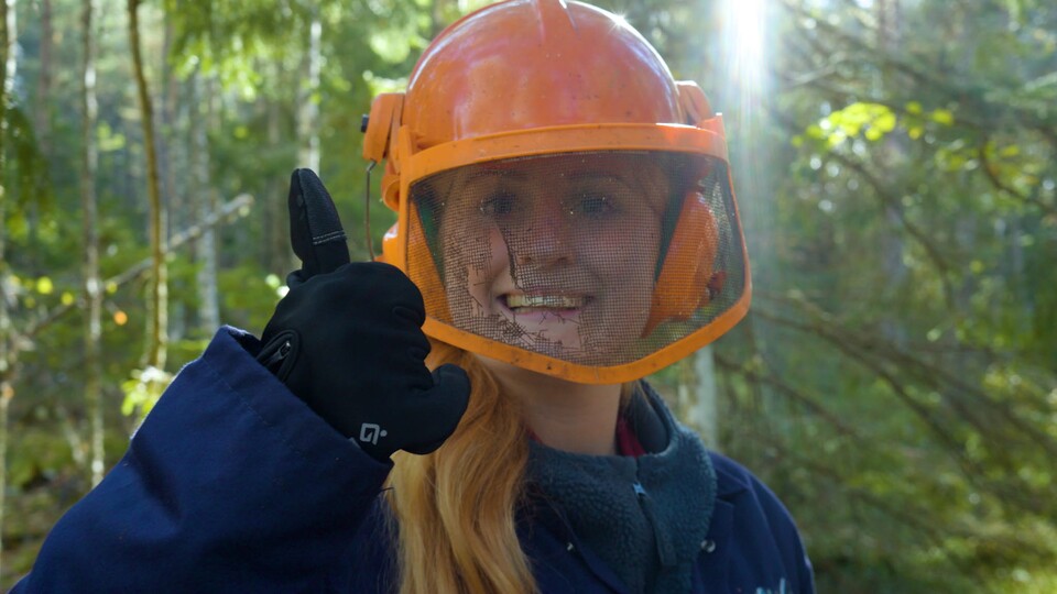 Josefine undersöker ett träds fallradie genom att mäta hur högt trädet är. Hur långt bort behöver hon stå för att inte få trädet över sig när det faller?
