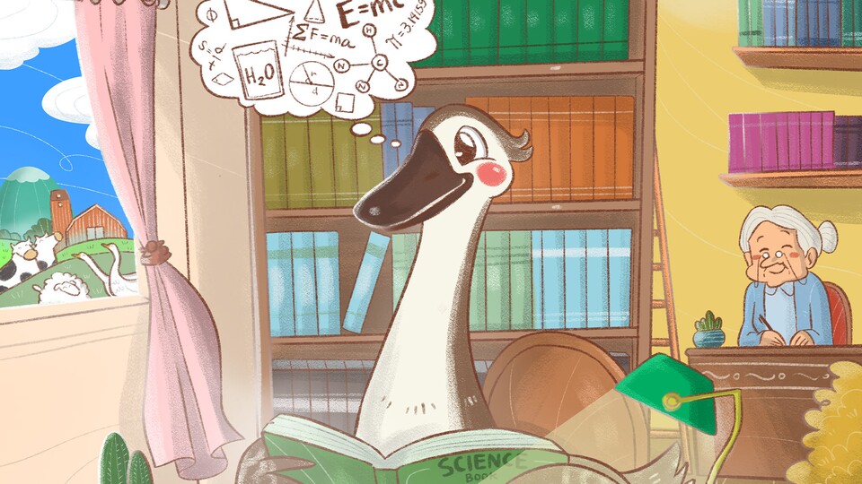 Gåsen har hört att hon inte är smart, men hon vill bevisa motsatsen. Hon bestämmer sig för att utforska vad kunskap egentligen är och varför den är så värdefull. Genom att kämpa mot fördomar och upptäcka glädjen i lärandet, visar hon oss att kunskap är en skatt.