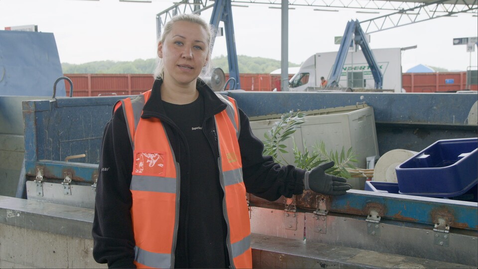 Det är viktigt att ta vara på sitt skräp. Återvinningsteknikern Rita visar hur det går till på återvinningscentralen. Hon visar hur man sorterar material i olika containrar och hur den stora rollpacken krossar skräpet så att mer får plats. Saker som är för fina för att slänga kan man lämna in till Återbruket.