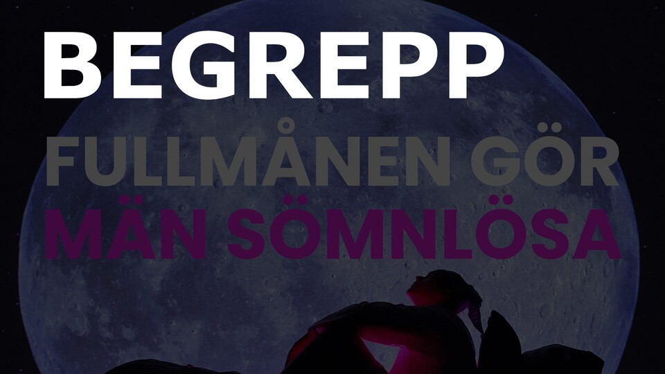 Begrepp som tillhör episoden "Fullmånen gör män sömnlösa" förklaras: mys, sömnlabb, prestation, förväntningseffekt, växande fasen, avtagande fasen, måncykel, tlltagande fasen, sömnstörningar, hypotes, polysomnografi, elektroder, elektrisk aktivitet, ojektiv utredning, reflektera, sömnförberedande, mlatonin, hormon, produktion, elektromagnetisk, kontrast och ljusexponering.