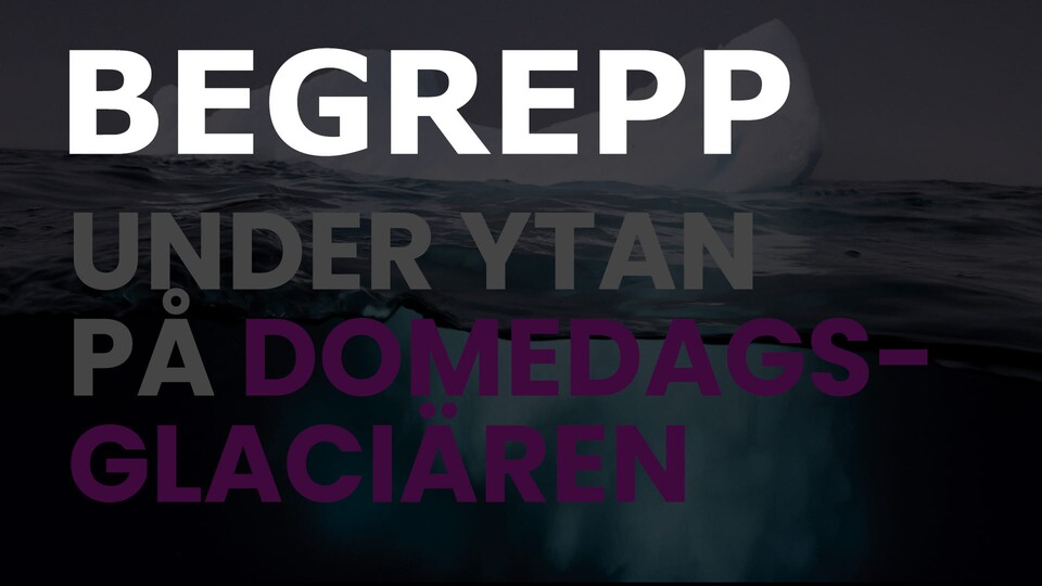 Begrepp som tillhör episoden "Under ytan på Domedagsglaciären förklaras": glaciär, oceanografi, domedag, sensor, ljudvågor, istunga, koldioxid, atmosfär och global uppvärmning.