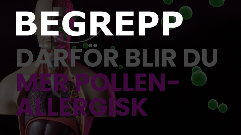 Begrepp som tillhör episoden "Därför blir du mer pollenallergisk" förklaras: pollen, slemhinna, allergener och histamin och eosinofil.