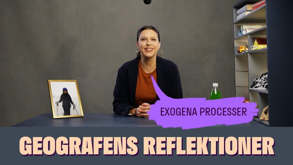 Kajsa berättar om hur beroende vi människor är av de exogena processerna för att få mat och rent vatten. Hon förklarar även hur det hänger ihop. Dessutom tar hon upp att även rötter och värme kan spränga berg - det kallas rotsprängning och temperatursprängning.