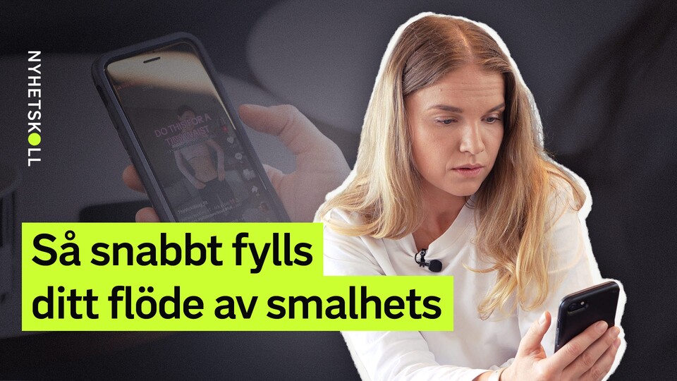 Fenomenet ”Skinnytok” sprider smalhetsideal och viktminskningstips på Tiktok. Enligt plattformen själva ska innehåll som uppmuntrar till ohälsosamma kroppsideal inte synas för användare under 18 år – men hur väl fungerar det i praktiken? Nyhetskoll har testat att scrolla som en 13-årig tjej. Inslaget innehåller bilder som kan vara triggande.