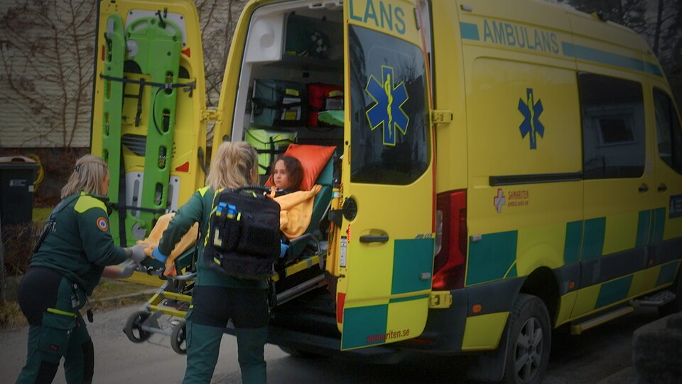Vi följer med Klara och Annika som jobbar på ambulansen. När larmet går är det bråttom. Annika sätter på blåljus och sirener. Nu ska de hämta Emina som har svårt att andas. I ambulansen får hon akutvård samtidigt som Doktor Samuel förbereder sig för att ta emot på sjukhuset.