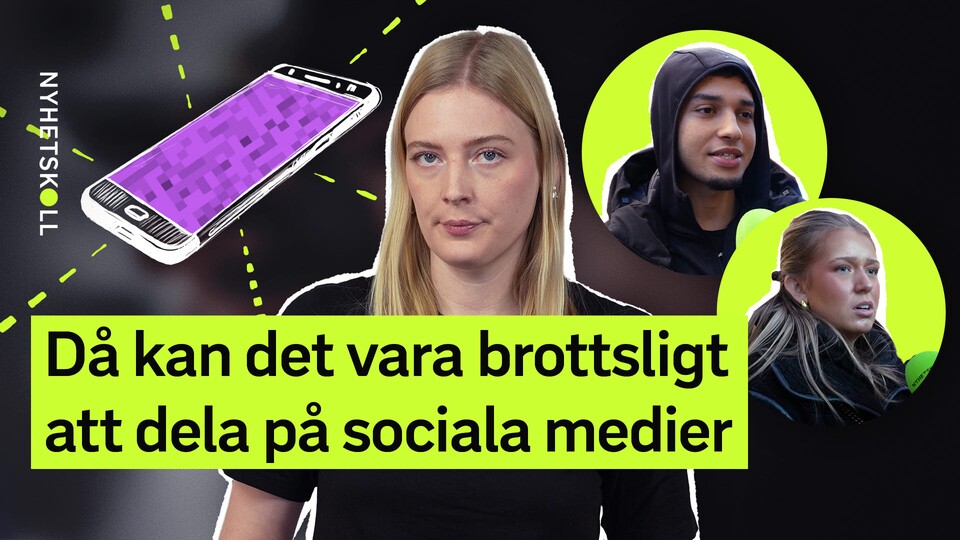Nakenbilder, filmer på slagsmål och rykten. Det är exempel på innehåll som kan vara olagliga att sprida på sociala medier. Nyhetskoll har pratat med Ängla Pändel, som är expert på brott på nätet, om vilken typ av videoklipp och bilder som kan vara straffbara att dela med andra. Det handlar om brotten olaga integritetsintrång, förtal och barnpornografibrott.