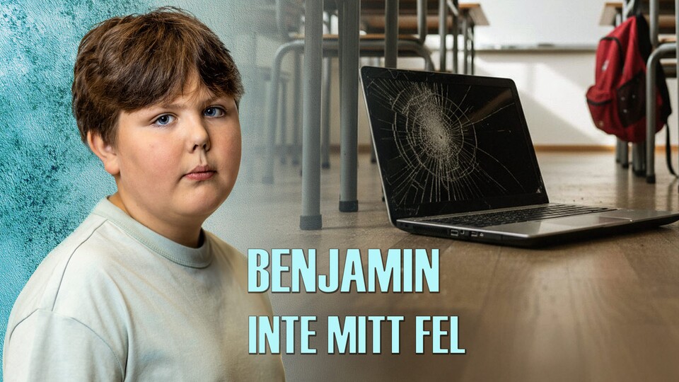 Benjamin hatar att uppträda och stå framför klassen. Men Eddi tjatar på Benjamin att följa med honom upp på scenen. Mot sin vilja sliter Eddi upp honom och drar en rånarluva över hans huvud. En sådan med hål för ögon och mun, som Eddie lånat av sin storebror. I tumulten snubblar Benjamin och fastnar i sladden till datorn som åker i golvet och går sönder.