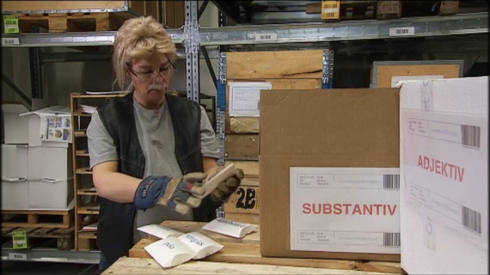 Mats på lagret har blandat ihop verb och substantiv. Ordkonstnären Peter lär ut ett superenkelt trick för att veta vilka ord som är substantiv. Britt-Inger i receptionen tipsar om hur man skiljer på singular och plural genom att titta i sitt familjealbum. Substantivlåtens trallvänliga melodi sätter musik till ordklassen.