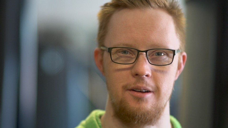 Vi möter unga vuxna med intellektuell funktionsnedsättning som arbetar. Viktor har alltid gillat att träna. En dag frågade han om han kunde få praktisera på gymmet där han brukade träna, och efter några månader blev han anställd. Idag är han lokalvårdare och instruktör på samma gym.